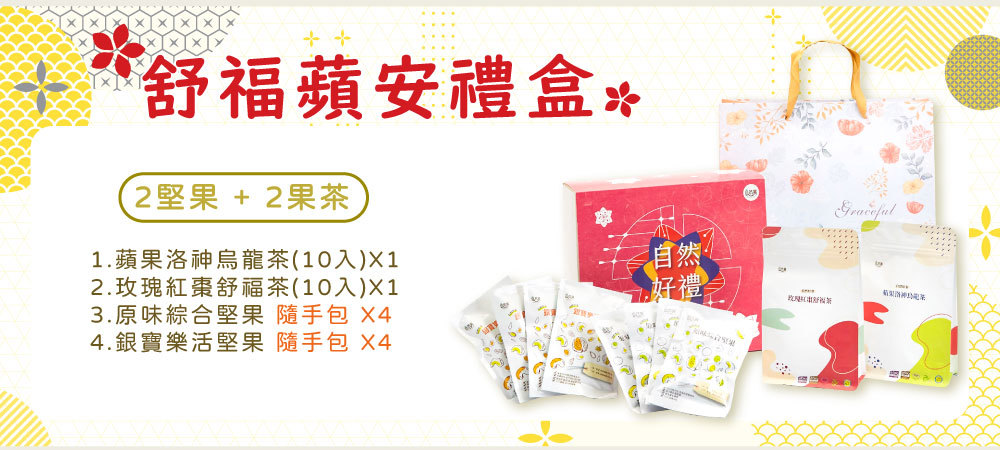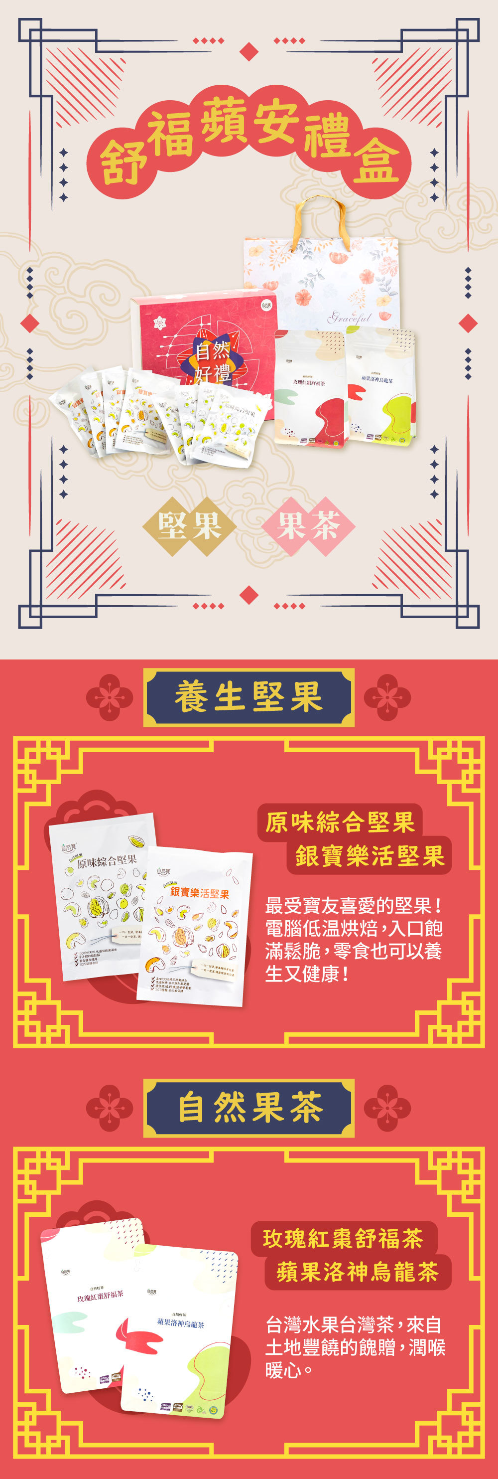 舒福蘋安禮盒:2種果茶各一袋(10入)+2種堅果各4包(2023)