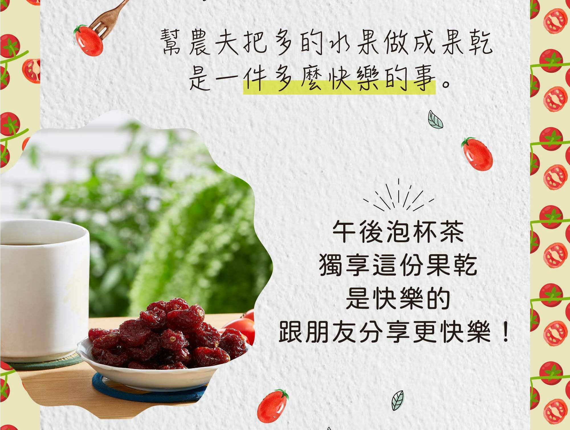 小小一個蕃茄恰到好處,適合一口吃掉,甜甜的又有嚼勁,會不自覺的一口接著一口,而且含有豐富維生素A、 B 、C及珍貴茄紅素。